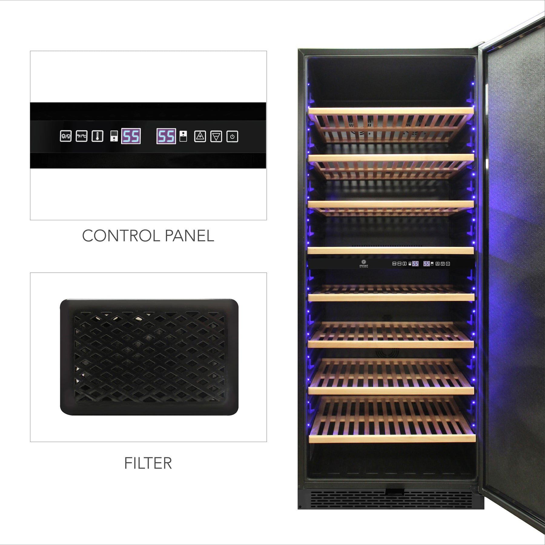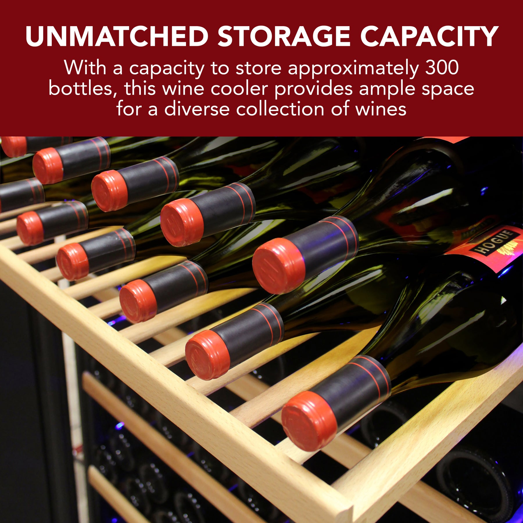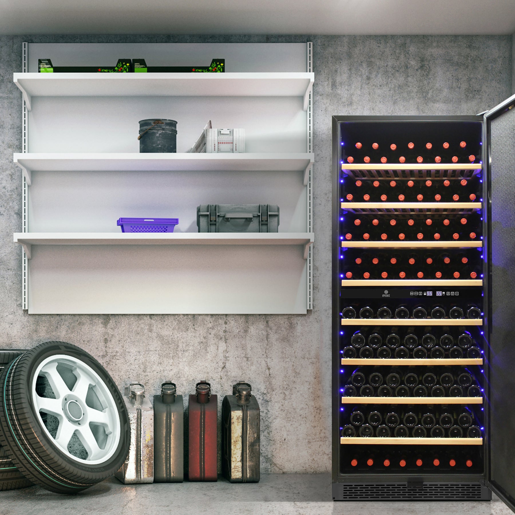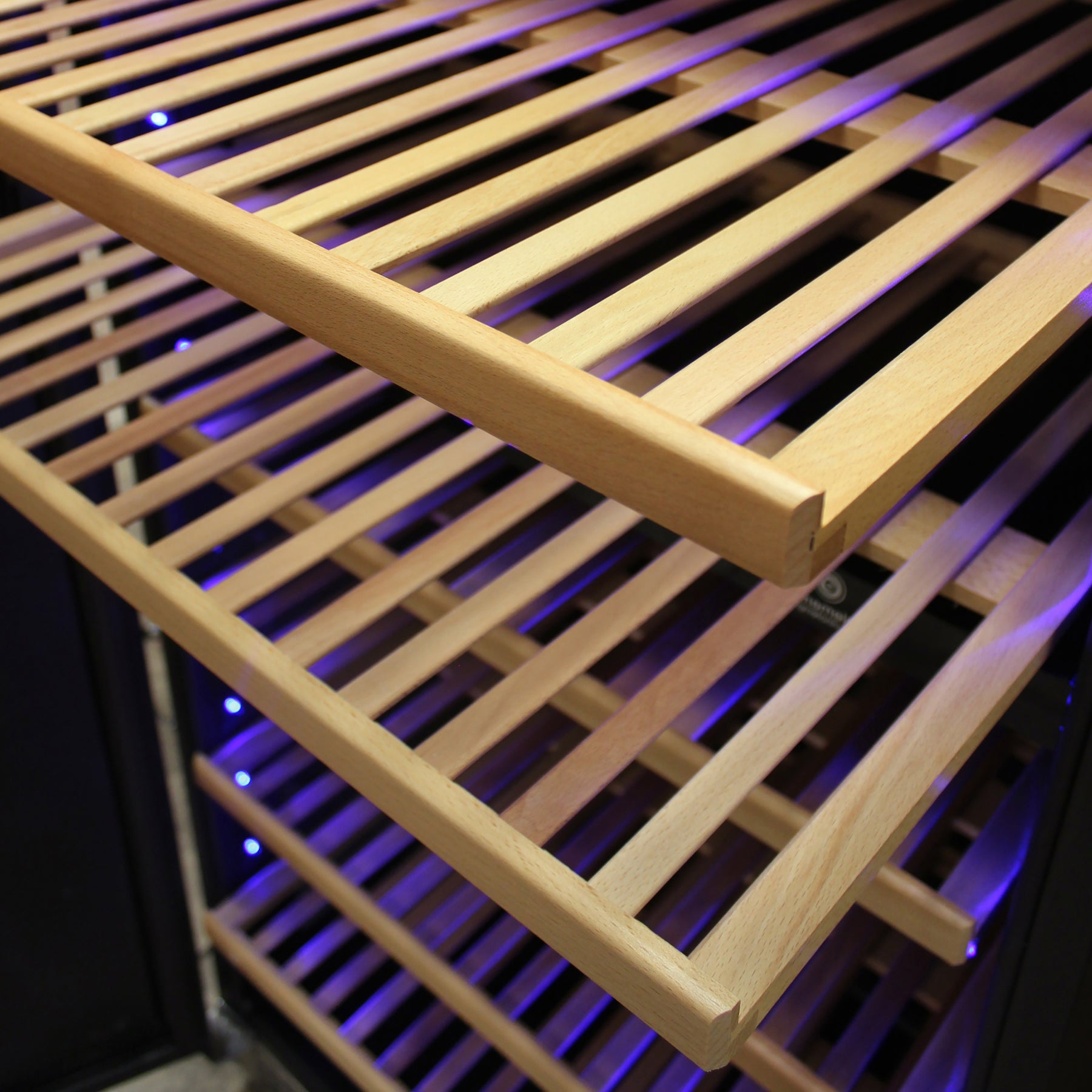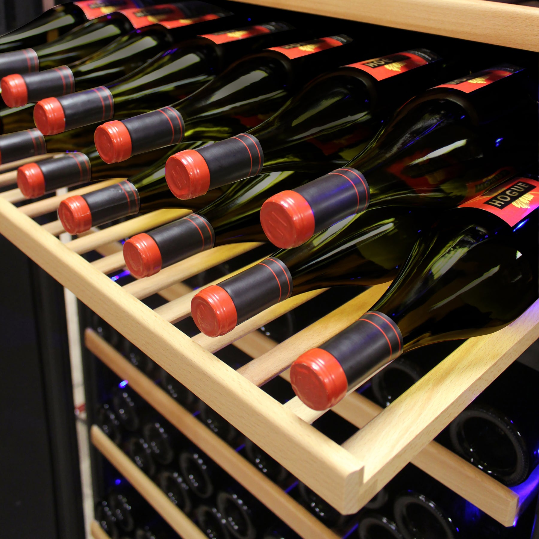 • Holds approximately 300 bottles, including bulk storage areas for larger Champagne and Magnum bottles (NOTE: If stacking bottles 2-3 high, do not pull out the shelves).