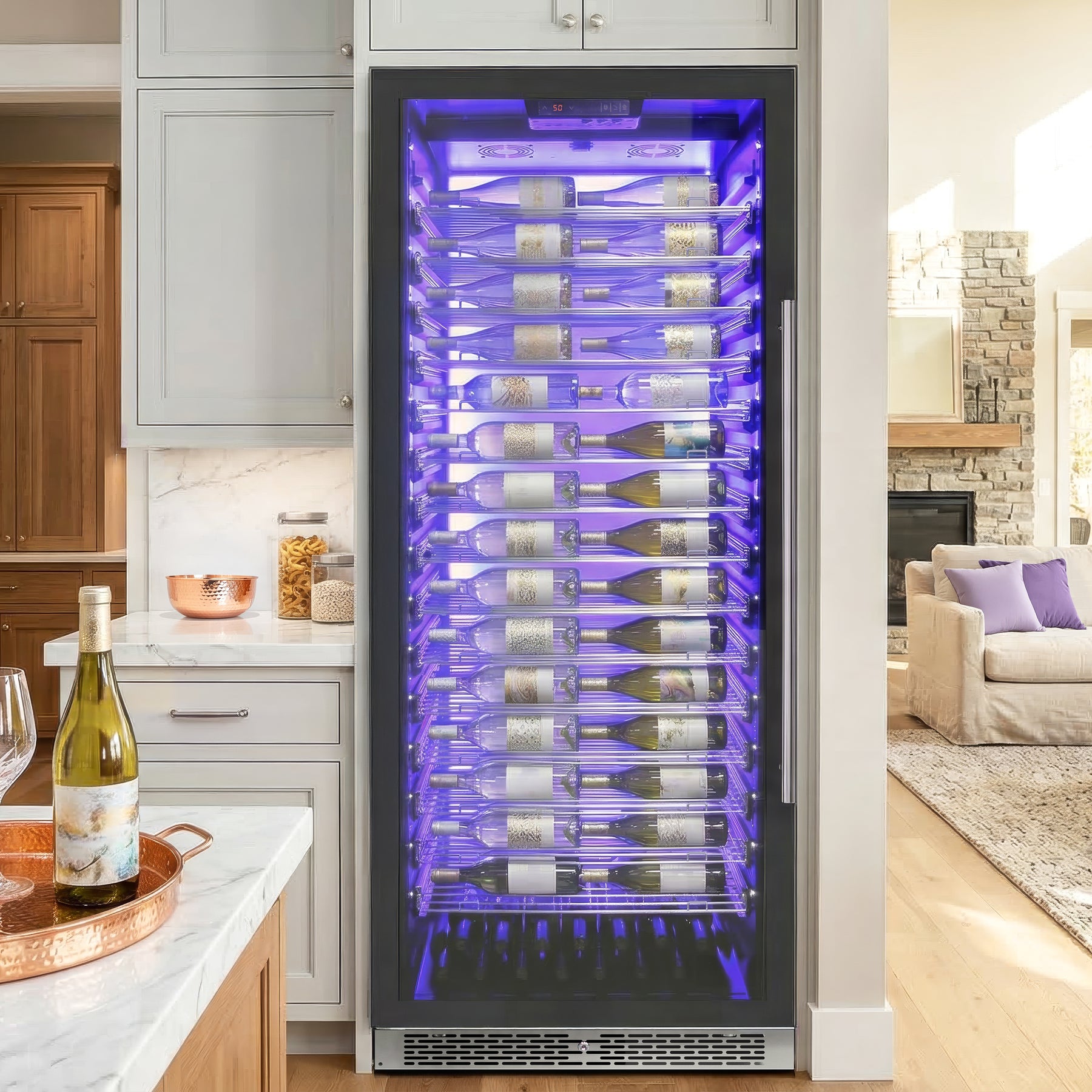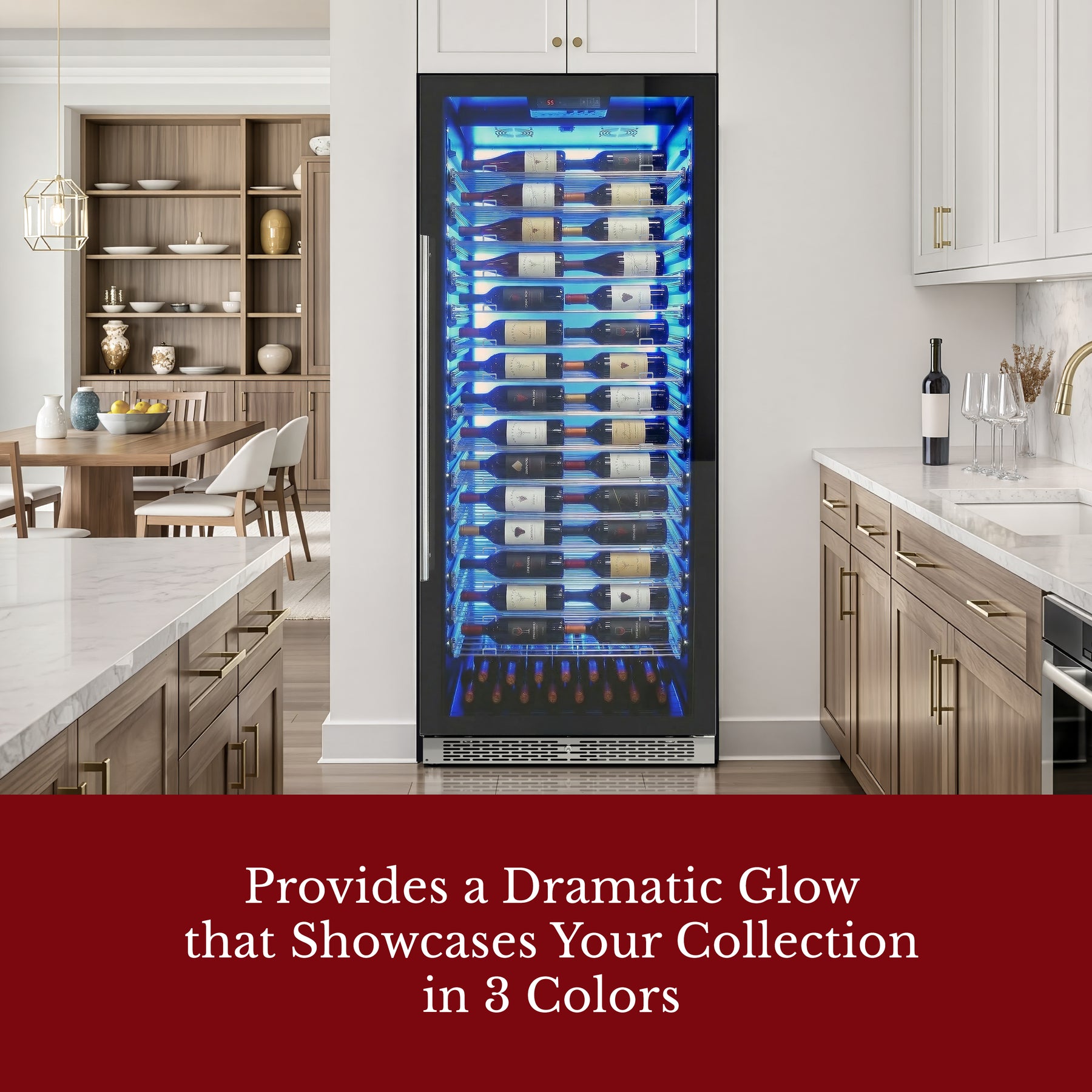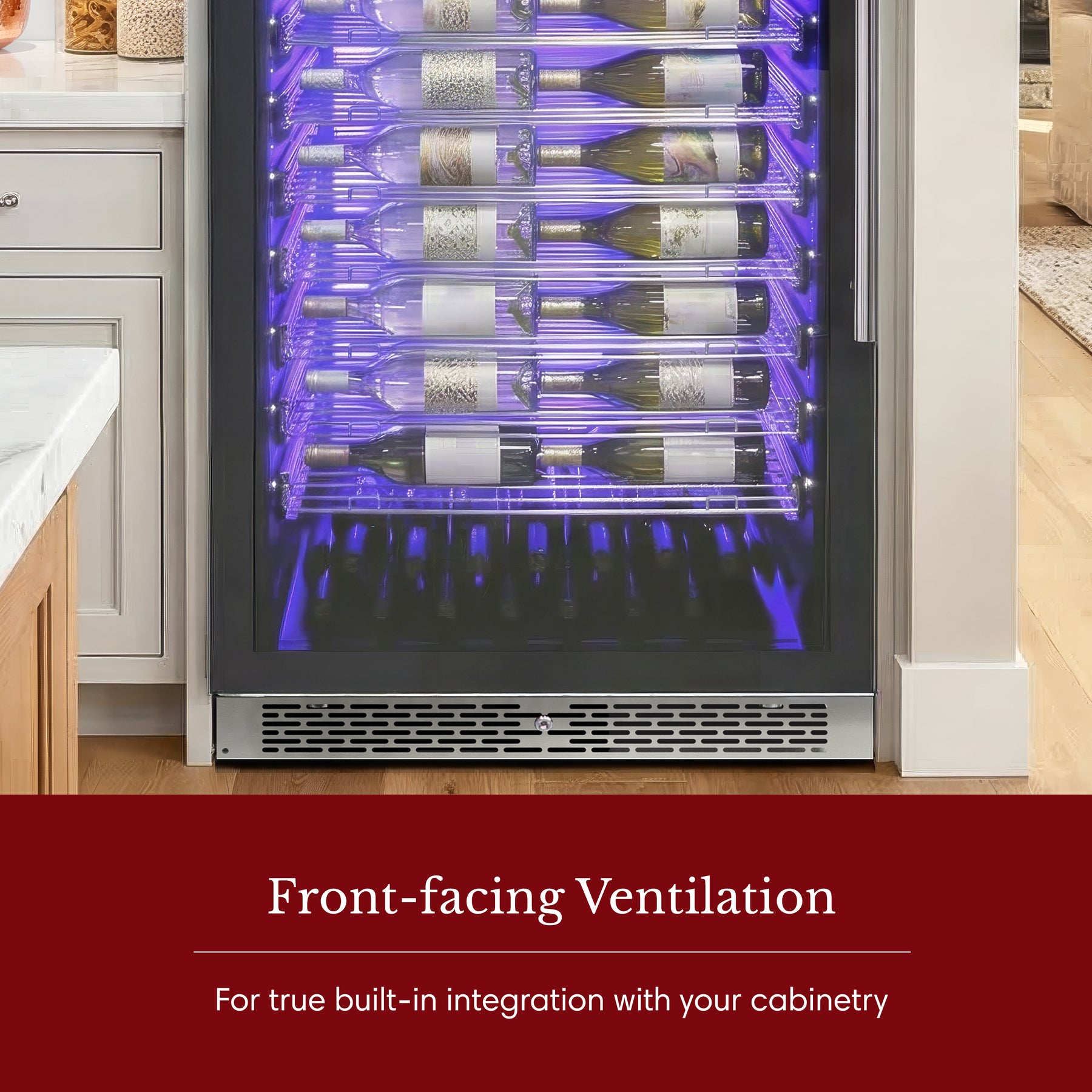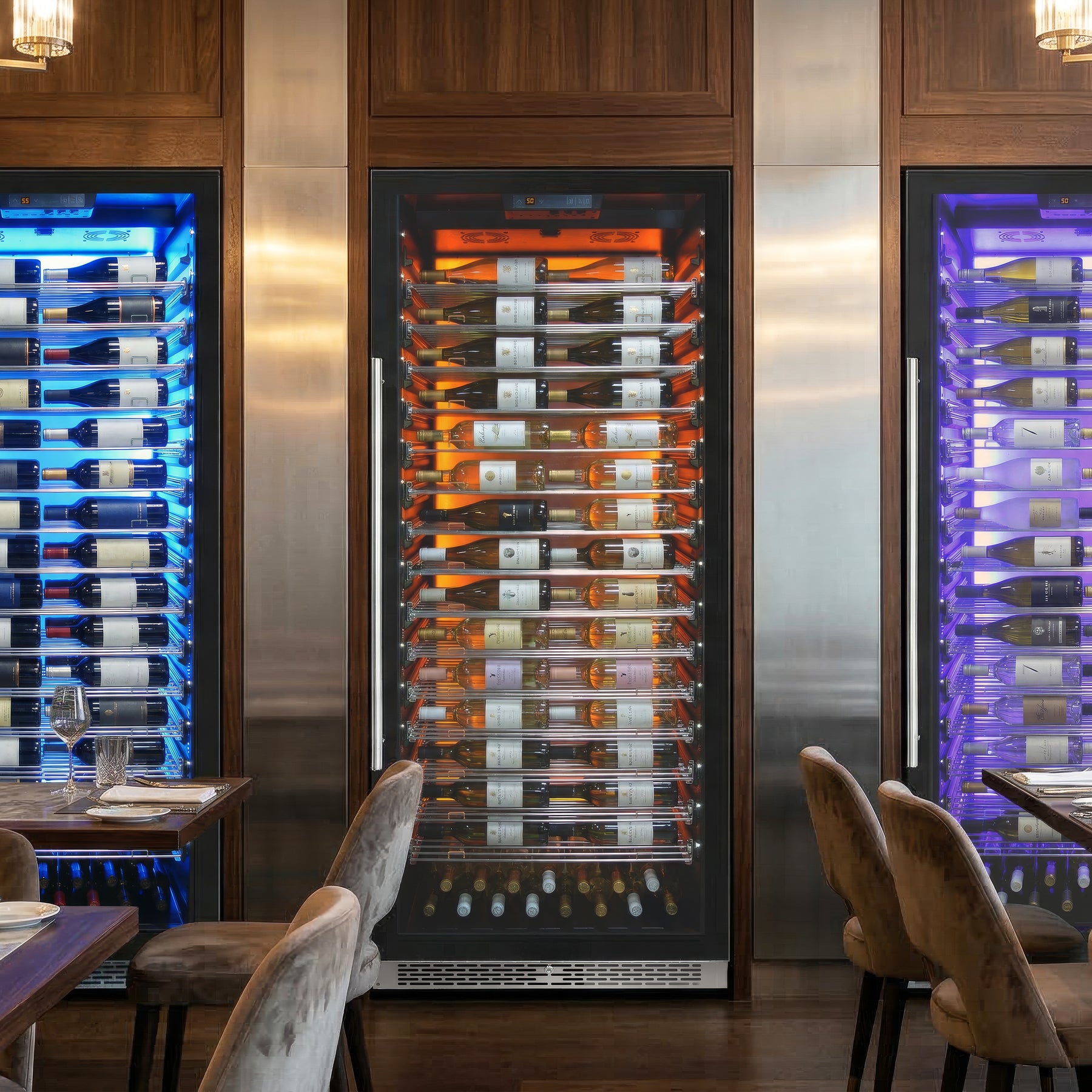 In addition to the 3 Backlit™ lighting options, there are side LED lights in BioBlue that line both sides of the unit. Glide out VinBo™ racks allow for a full view of your wine bottle lables.
